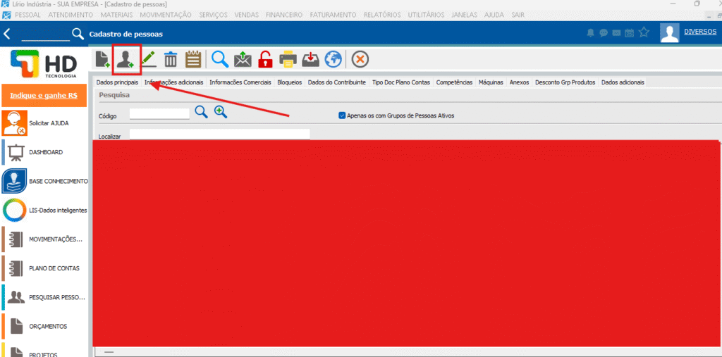 1º Passo : Acessar a aba Pessoal > Pessoas :